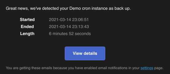 Get to know when & for how long your monitors became unavailable & get instant email notifications.